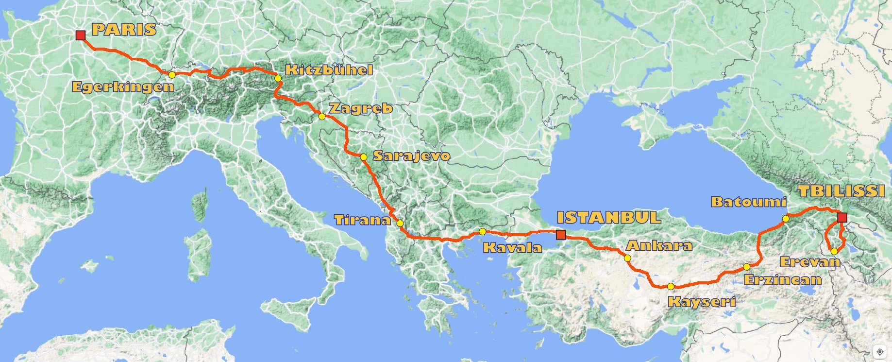 Après un départ symbolique depuis Paris pour une quinzaine de motos, la première étape permettait de rejoindre la Suisse, point de rencontre pour l’ensemble des participants. La seconde étape était tracée à cheval sur la frontière entre l’Autriche et l’Allemagne dans cette magnifique région de Bavière pour faire ensuite étape à Kitzbühel, la célèbre station de sport d’hiver. Direction plein sud pour la 3e étape avec pas moins de 4 pays : l’Autriche puis l’Italie, rejoint après le passage du superbe Passeo di Pramollo, la Slovénie et enfin la Croatie et sa capitale Zagreb. Le lendemain, entrée en Bosnie- Herzégovine avec ses paysages somptueux et préservés. Pour cette 5e étape, l’entrée au Monténégro par un antique pont de bois suivi par un incroyable canyon fut l’un des points forts de cette première semaine. Ensuite la fin de l’étape en Albanie fut beaucoup moins agréable avec d’interminables embouteillages pour rejoindre Tirana. Heureusement, le lendemain, les raiders ont pu découvrir un autre visage de ce pays avec un début de parcours en montagne puis le lac d’Ohrid avant l‘entrée en Grèce et la traversée de la magnifique région de Macédoine centrale aux paysages très contrastés. Enfin la dernière journée de cette première semaine était consacrée à l’entrée en Turquie et à l’arrivée dans Istanbul.